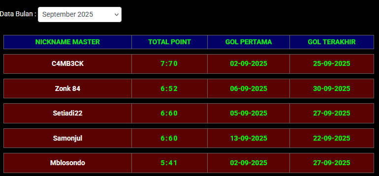 | 12 | setiadi22 | 5:50 | 02-10-2025 | 23-10-2025 |